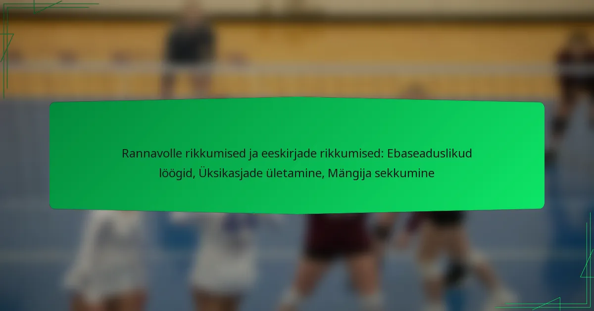 Rannavolleys on oluline mõista vigu ja rikkumisi, nagu ebaseaduslikud löögid, üleulatus ja mängijate sekkumine, et tagada aus mäng. Ebaseaduslikud löögid võivad mängu häirida ja viia karistusteni, samas kui üleulatus tähendab, et mängija ulatub võrgu vertikaalsest tasapinnast kaugemale, et segada vastase mängu. Nende reeglite tundmine aitab mängijatel tõhusalt strateegiaid välja töötada ja tagab konkurentsivõimelise, kuid austava keskkonna väljakul.