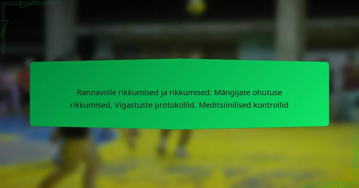 Rannavolleys on vigastuste protokollid hädavajalikud mängijate ohutuse ja õige meditsiinilise reageerimise tagamiseks mängude ajal. Need protokollid kirjeldavad samme vigastuste hindamiseks, kohtunike vastutust ja meditsiinitöötajate rolli mängijate tervise haldamisel.