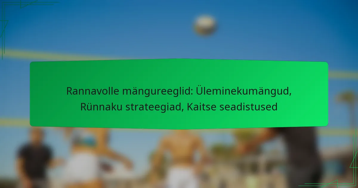 Rannavolleymängu reeglid, mille on kehtestanud Rahvusvaheline Võrkpalliföderatsioon (FIVB), määratlevad olulised reeglid mängijate käitumise, skoorimise ja mängustruktuuri kohta, et tagada aus konkurents. Olulised elemendid, nagu üleminekumängud, kus meeskonnad liiguvad kiiresti kaitselt rünnakule, on elutähtsad, et säilitada hoogu ja luua skoorimisvõimalusi. Lisaks on rünnaku strateegiad loodud skoorimise optimeerimiseks, samal ajal vastase kaitse väljakutsumiseks, rõhutades meeskonnatöö ja suhtlemise tähtsust väljakul.