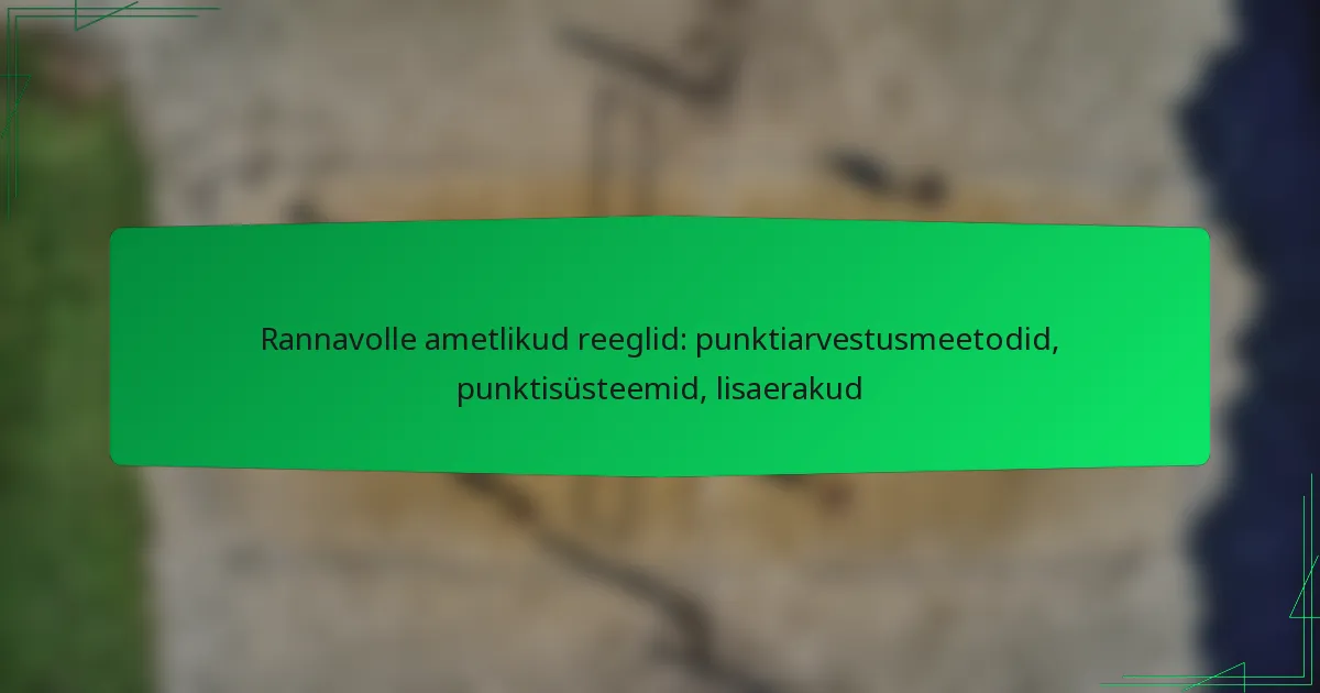 Rannavolleyl on kaks peamist punktiarvestuse meetodit: traditsiooniline punktiarvestus ja rallipunktiarvestus, millest igaühel on mängule ja strateegiale oma mõju. Punktisüsteem määrab, kuidas meeskonnad punkte koguvad, et võita sete ja matše, samas kui viigireeglid tagavad õiguse, kui meeskonnad on võrdsed. Nende elementide mõistmine on mängijatele ja fännidele ülioluline.
